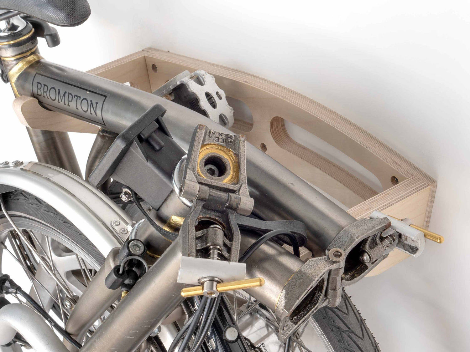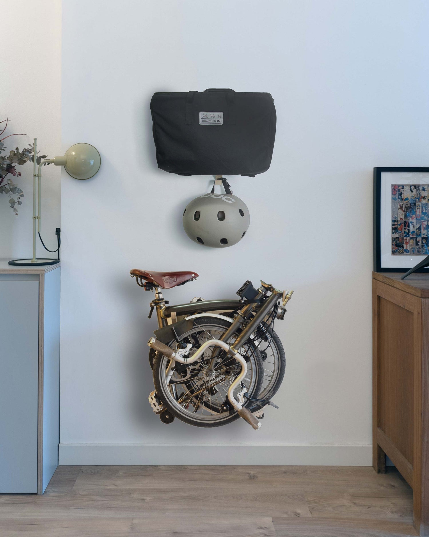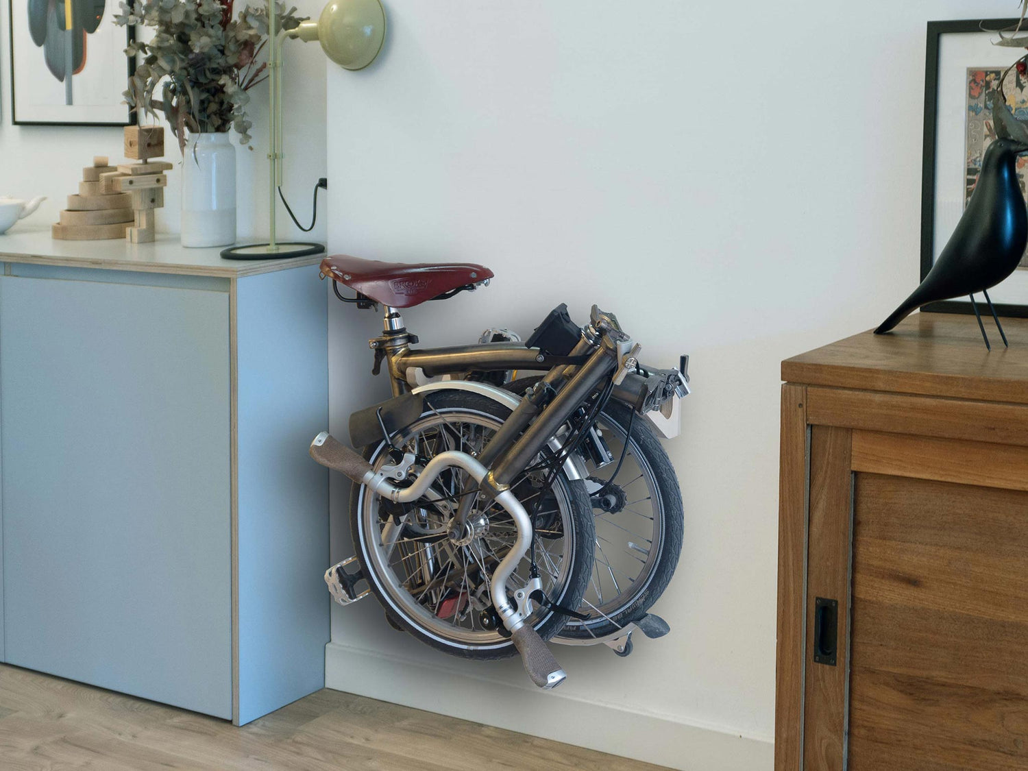 BromWall es un colgador de pared para bicicletas especialmente diseñado para tu Brompton.